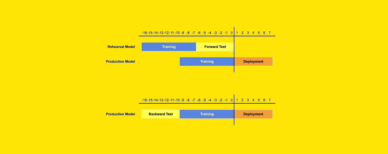 It always goes like this: train on older data, test on the most recent data, and finally retrain on the latest data before deploying.